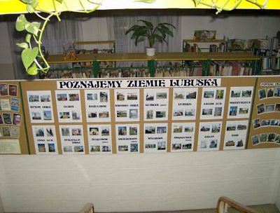 holu Biblioteki na parterze czynna jest ekspozycja "Poznajemy Ziemię Lubuską" złożona z