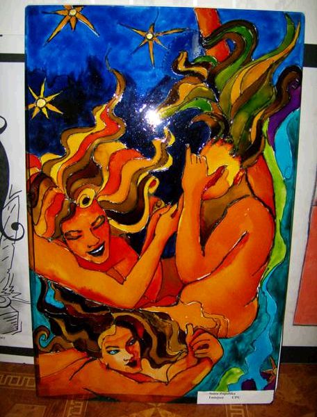 wykonane w trzech technikach - na jedwabiu, w akrylu i na monotypii.